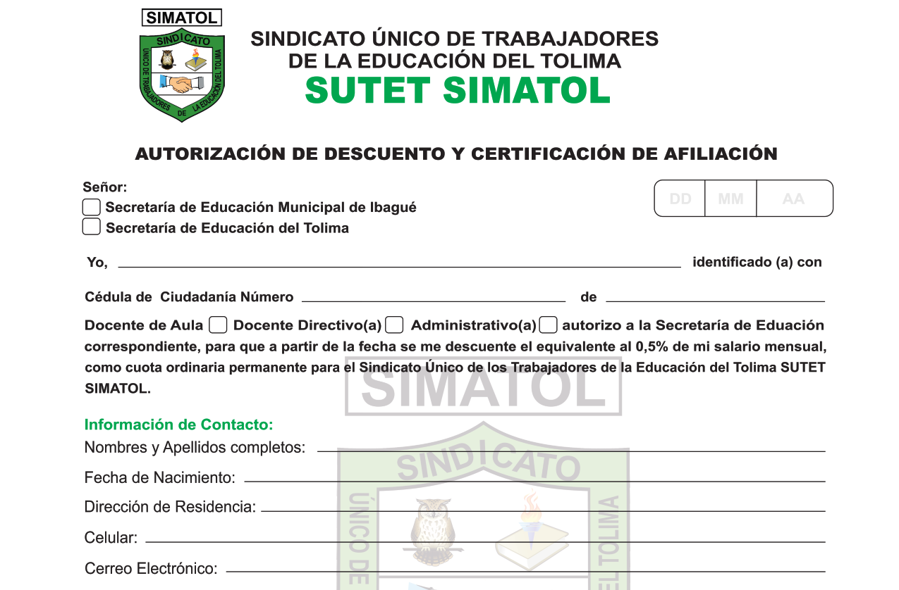 5. Hágalos llegar a la sede Casa del Maestro Avenida 37 Carrera 4ª.G, o escanéelos y envíelos como archivos adjuntos al correo electrónico simatolafiliaciones@gmail.com